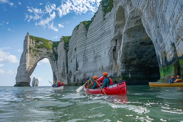 Canoë Team Building sous les arches des falaises d’Etretat